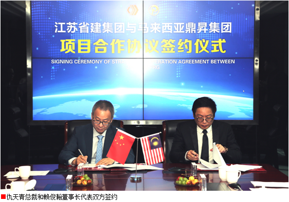 簽約儀式上,江蘇省建集團總裁仇天青和馬來西亞鼎昇集團董事長賴俊瀚分別代表雙方致辭。他們在致辭中分別介紹了企業(yè)的的基本概況和主要業(yè)務發(fā)展情況,雙方一致表示,將本著“互利共惠”的原則,利用各自優(yōu)勢資源,開展全方位深層次合作,努力實現互利共贏,相信江蘇省建與鼎昇集團的合作一定能夠取得圓滿成功。